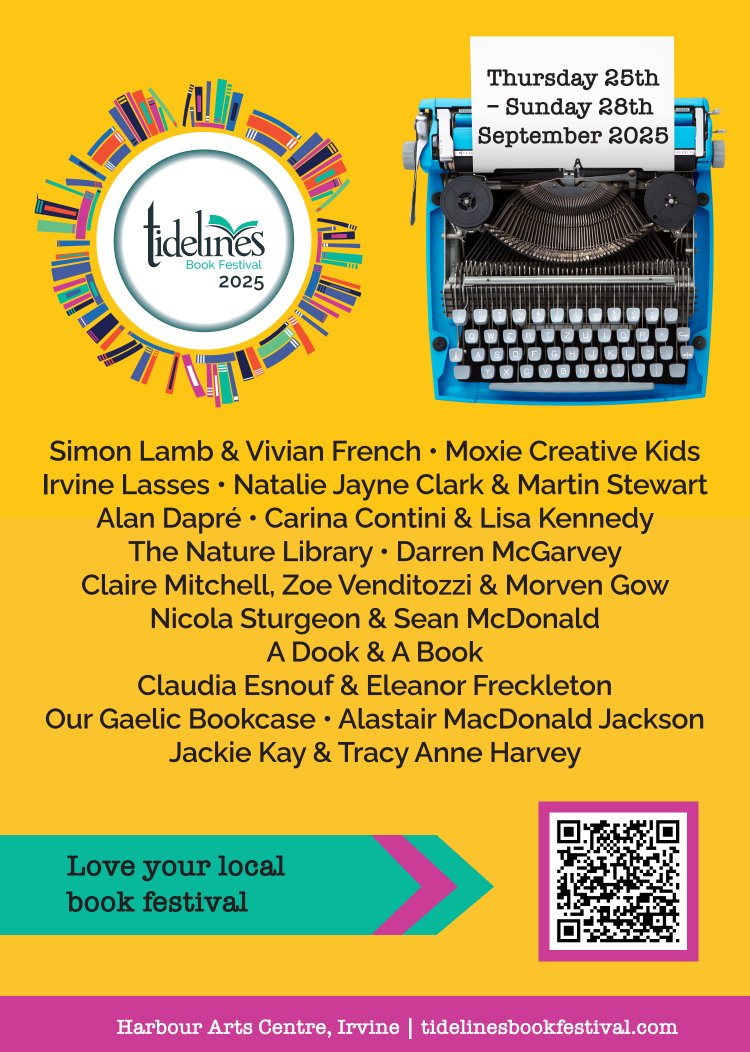 Tidelines Book Festival has firmly established itself as a highlight in North Ayrshire’s cultural calendar. Now entering its 12th year, the event is a vibrant celebration of storytelling, creativity and community. This year’s festival takes place from Thursday 25 September until Sunday 28 September with the Harbour Arts Centre in Irvine hosting most of the events.